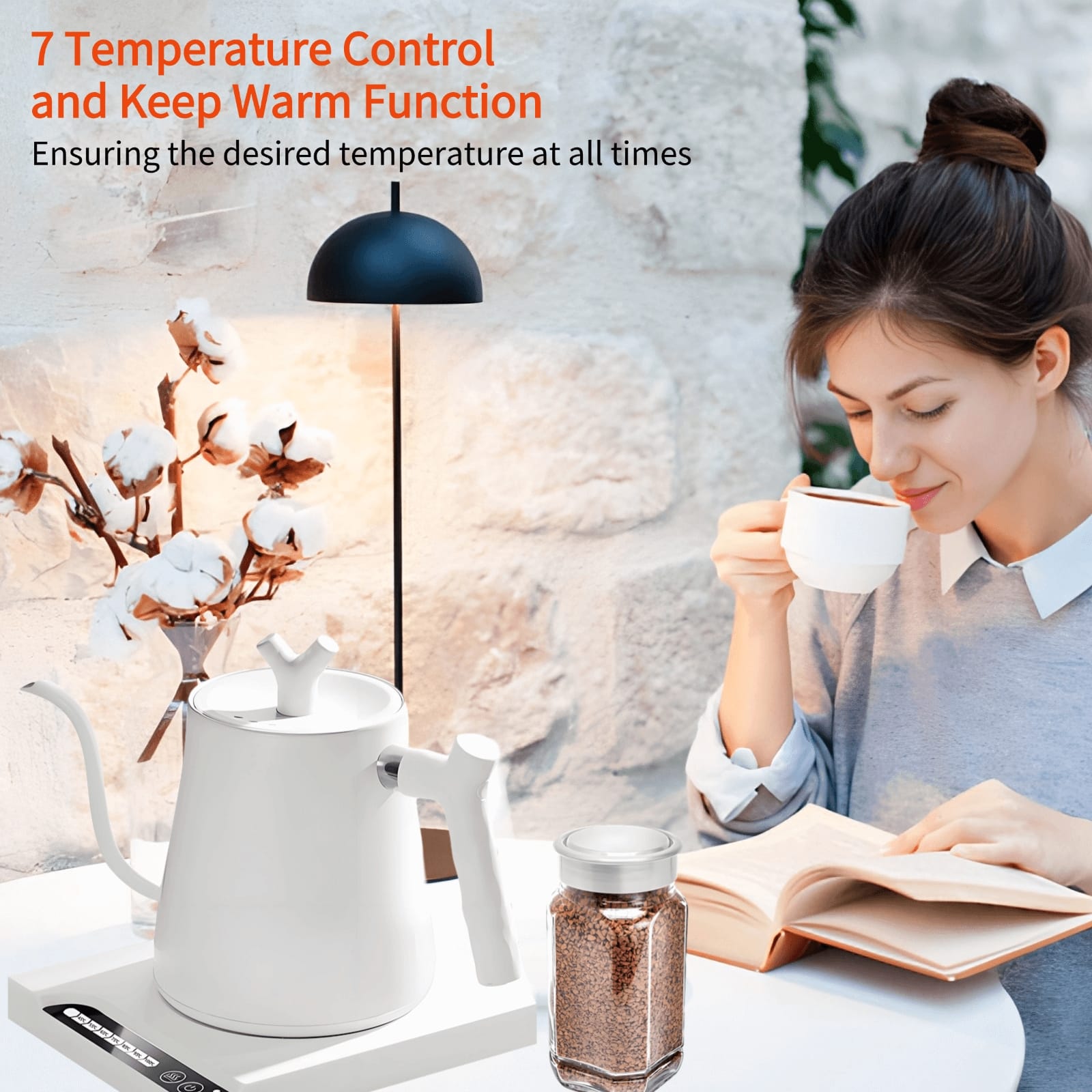 - 鹅颈电水壶,温度控制及保温功能,7档温度调节,快速加热,不锈钢材质,适用于冲泡咖啡和茶,800瓦/1升