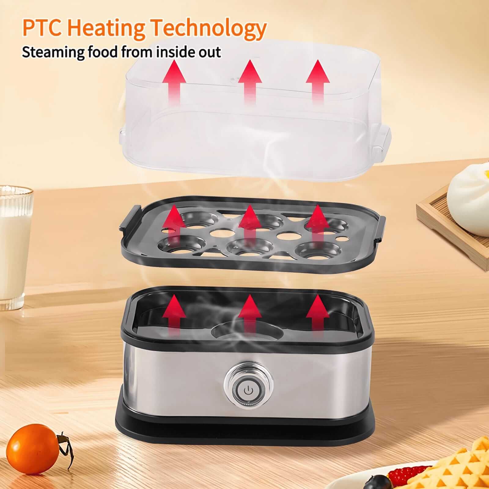 Ethan G This cooker has been a total lifesaver on busy mornings. I used to skip breakfast because boiling eggs on the stove took too long and I never had time to monitor them. Now I simply put in six eggs, press the button, and walk away. The PTC heating technology seems to work really well because the eggs cook evenly whether I’m making soft or hard boiled. I also appreciate how safe it feels — the dry burn protection and auto shut-off mean I don’t have to worry if I forget about it for a few minutes. Cleanup is simple since most parts detach and can be washed separately. Absolutely worth the price!