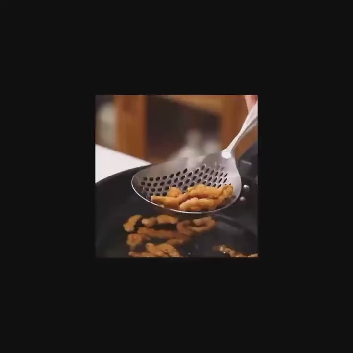 - 大而深的碗状设计:宽敞的设计非常适合从锅和炒锅中高效捞取大量油炸食品、饺子或面条。