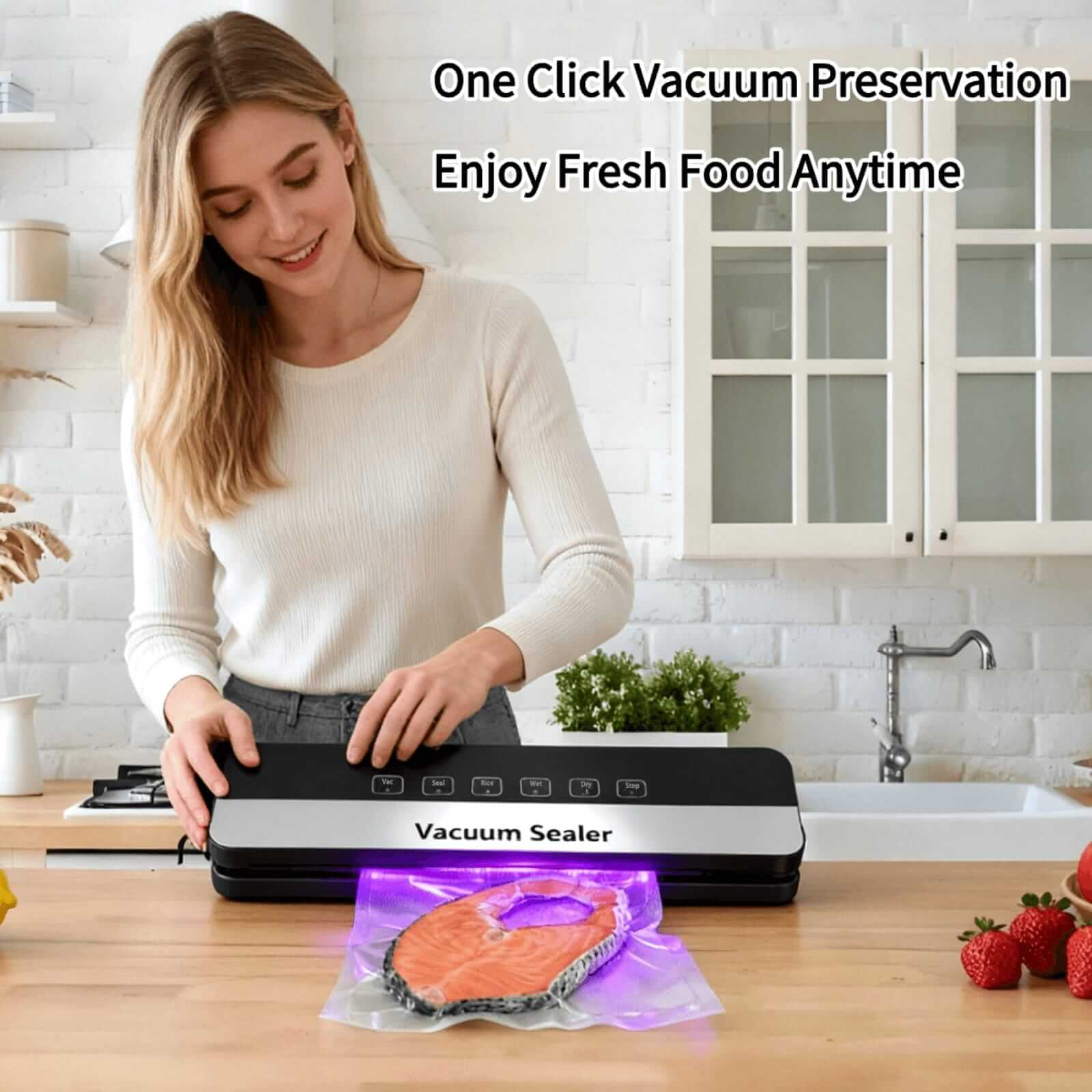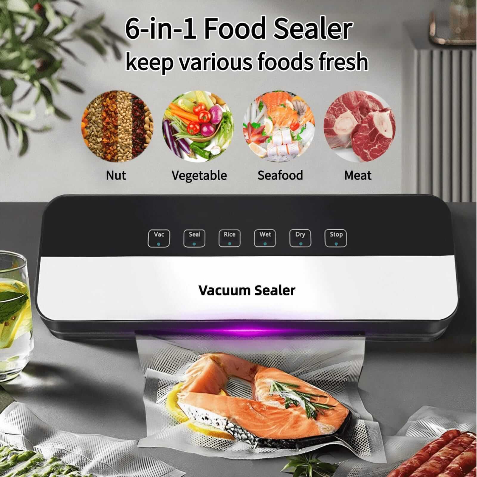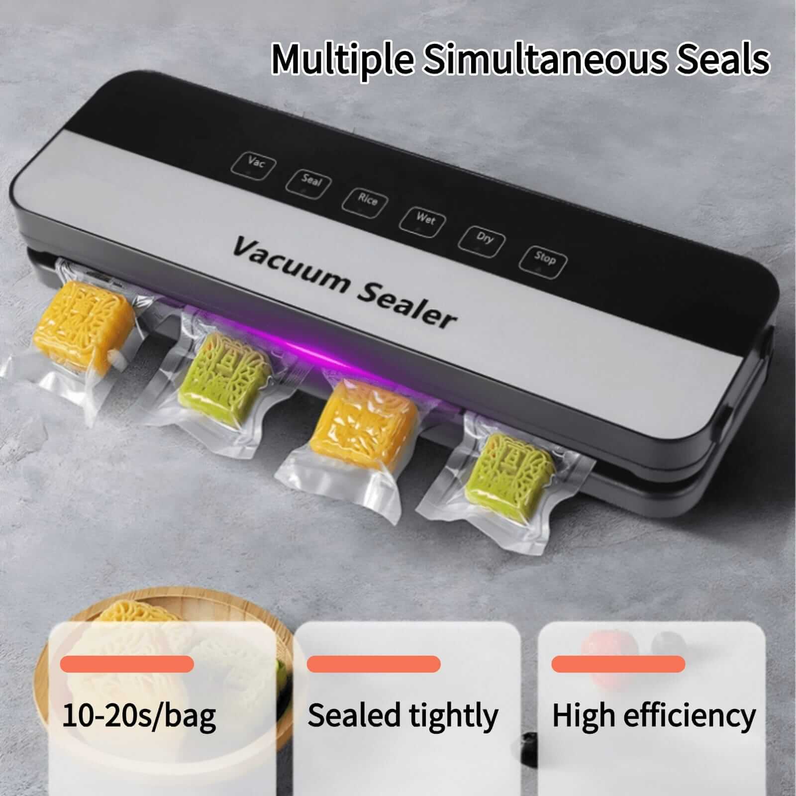 • 【保持多种食物新鲜】配备紫色灯光功能,确保食物清洁卫生,有效保鲜坚果零食、海鲜、蔬菜水果、生熟肉类等多种食物,同时显著减少食物氧化。最大密封长度为11.8英寸